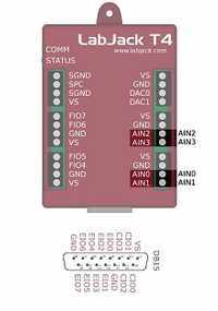 The LabJack T4 has up to 12 built-in analog inputs, readable as AIN0-AIN11: