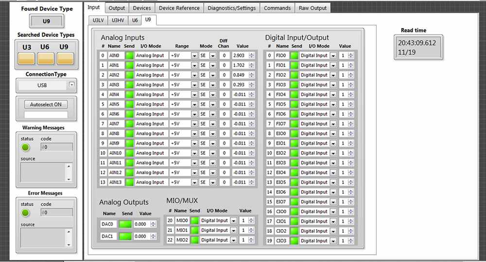 Interface Innovations developed a LabVIEW Library to assist with collecting data and controlling several of our devices. A quote from their website regarding LabJack products: