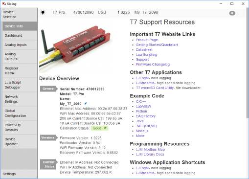 LabJack is dedicated to making quality data acquisition and control devices. In order to do this we release device updates with new features, bug fixes, and more. Kipling makes updating firmware simple.