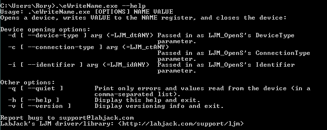 This set of command line executables are built for the LJM library. All functions and parameters for this library can be found in the LJM Library User's Guide.