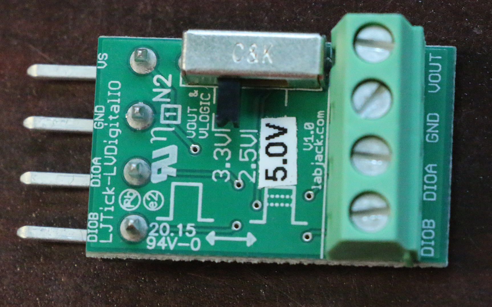 This is a short tutorial for how to modify a LJTick-LVDigitalIO accessory to change the 1.8V option to 5V. Larger versions of each image are linked and can be downloaded at the bottom of the page.