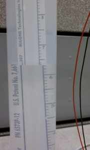 The eTape was tested in a 250 ml graduated cylinder, and reported the depth of liquid readily after software calibration. The immersed sensor and wiring is shown below.