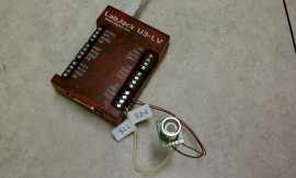 The SRF02 is an ultrasonic sensor similar to the EZ0 but it only offers Serial, and I2C output. It is shown below connected to a U3 via I2C.