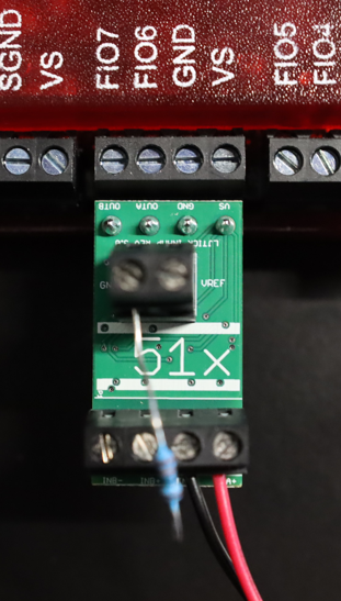 You may have noticed that your internal temperature sensor is quite inaccurate (±5°C). To fix this, we’ll use an LJM34CAZ for cold junction temperature, rather than the internal sensor. Bend the leads as needed and connect the LM34CAZ directly to FIO4/VS/GND. Watch for correct polarity, as the diagram of the TO-92 package on the LM34 datasheet is showing the bottom view. The image below shows the typical LM34 connections: